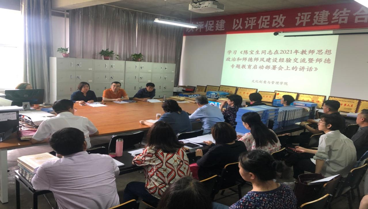 为深入学习贯彻习近平总书记关于教育的重要论述和教师队伍建设的重要指示精神,系统总结教师思想政治和师德师风建设工作成效经验,狠抓教师思想政治和师德师风建设重点任务落实。6月15日,文化创意与管理学院召开学习《陈宝生同志在2021年教师思想政治和师德师风建设经验交流暨师德专题教育启动部署会上的讲话》会议,会议由党总支书记马建英主持,全体教职工参加会议。